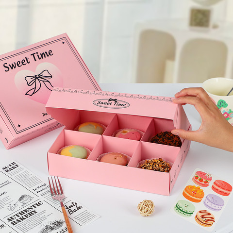 Hot Hồng tùy chỉnh marcaroon hộp đóng gói với Divider bên trong và biểu tượng tùy chỉnh cho bánh